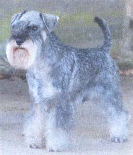 Roi Soleil is a true old legacy representative. This 33 centimetres tall dog is a perfect miniature schnauzer: extremely harsh coat, good proportions, explosive temperament. Roi Soleil is definetly not an american type mini, and could be very importand to avoid the lost of the original schnauzer type.